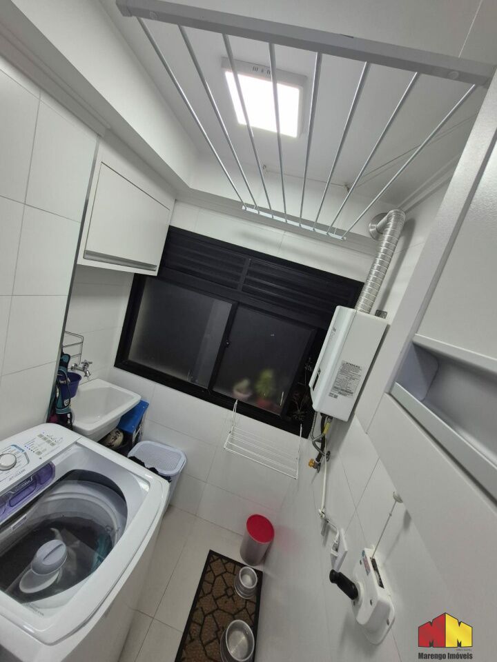 Área de serviço com varal e armário planejado para produtos de limpeza