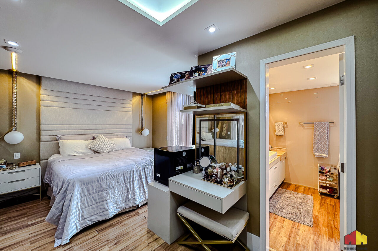 Composto de 3 Suítes, sendo a master com banheira, 1 escritório, sala de vídeo, sala de Jantar (possui um retroprojetor para eventos e festas), móveis Todeschini e Florenze, ar condicionado em todos os cômodos, cozinha toda planejada, dispensa para alimentos, lavanderia com deposito (dispensa).
